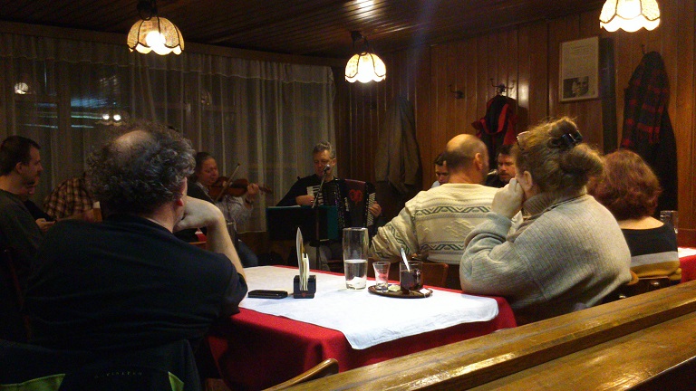 Und zwar gab sich die Stiefelbein Bluhs-Bänd (http://www.stiefelbein.com/) im Weinhaus Sittl die Ehre. Eine super original Wiener Location für diese Band, deren Repertoire aus echt wienerischen Texten zu toller Blues-, Country- und Folkmusik besteht. Gespielt wurde übrigens gute 2 St